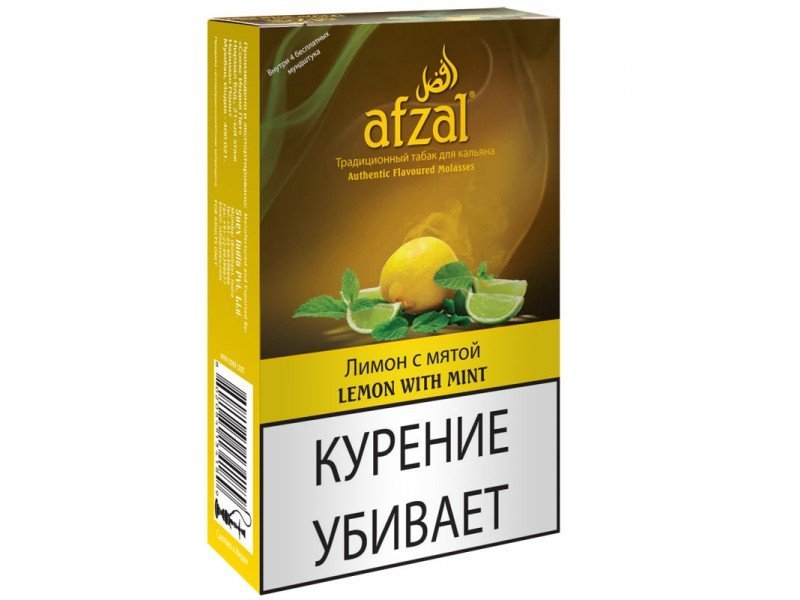 Табак Afzal Lemon with Mint - натуральный вкус лимона в начале, и приятная мятная свежесть в конце. Отлично заходит в миксе с колой, малиной и киви.