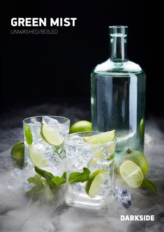Табак Darkside Medium Green Mist – вкус алкогольного коктейля “Кайпиринья”, цитрусовый вкус с нотками алкоголя.