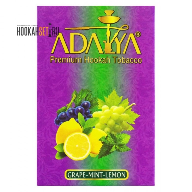 Табак Adalya Grape Mint Lemon - смесь черного и белого винограда с мятными и цитрусовыми нотками. Прекрасно подойдет для курения в чистом виде и будет интересно играть в миксах.