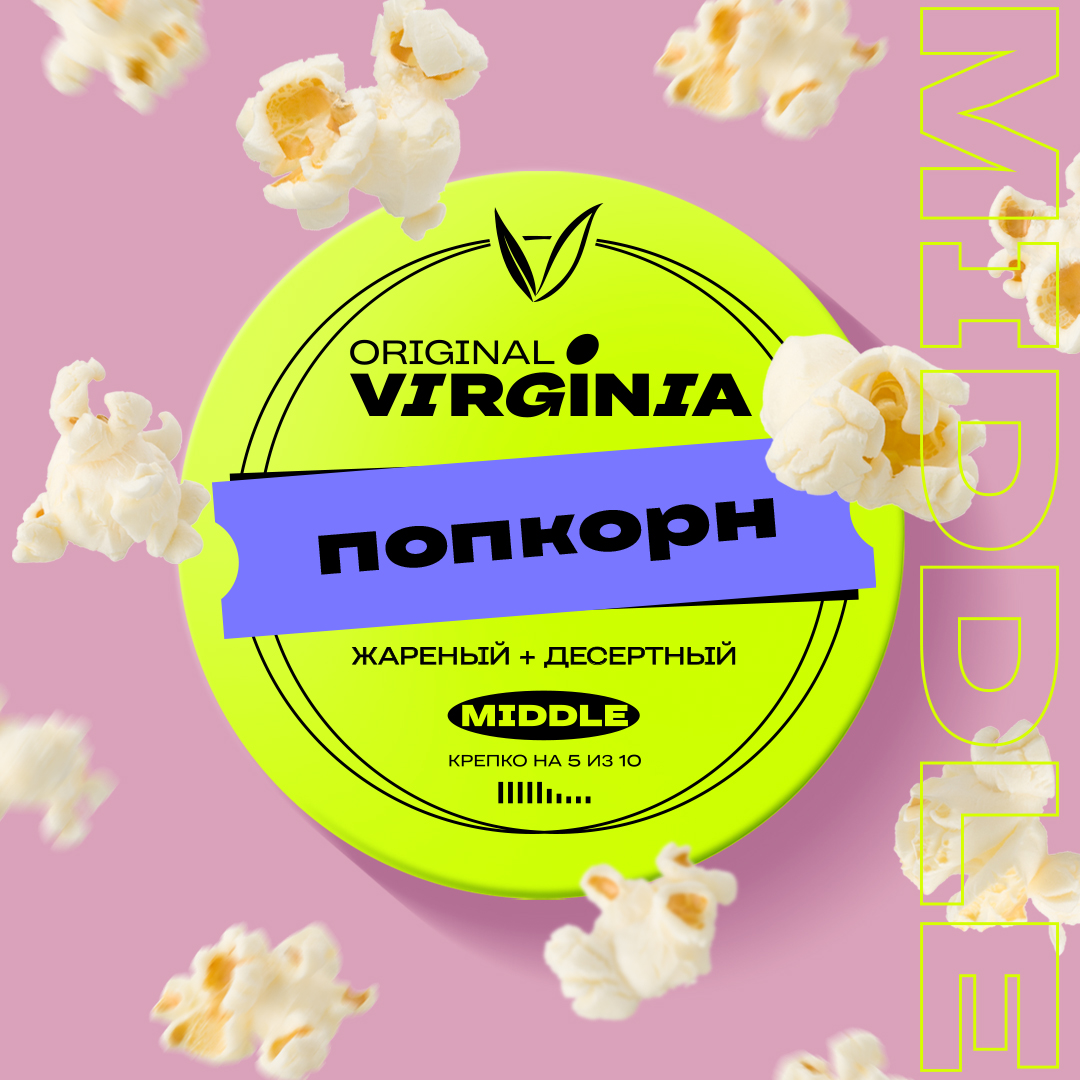 Табак Original Virginia - Попкорн - Отправьтесь в кино-вечеринку с нашим табаком для кальяна со вкусом попкорна. Насыщенный аромат свежего попкорна и сладкая соленость создают неповторимую атмосферу. Каждая затяжка наполняет вас воздушностью и хрустящим вкусом, принося ощущение праздничного кино-времени.